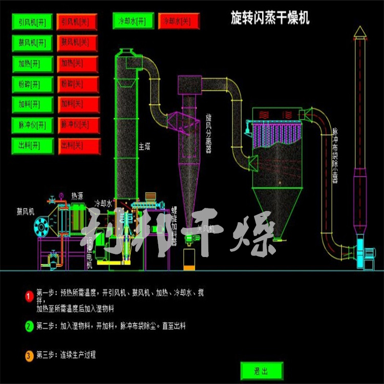 ● 干燥室内周向气速高,物料停留时间短,有效防止物料粘壁及热敏性物料变质现象,达到高效、快速、小设备、大生产。