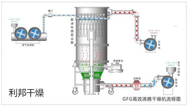 ● 流态化干燥、热质传递快;本设备在GFG高效沸腾干燥机的基础上增加一个干燥直断,使物料更容易干燥;