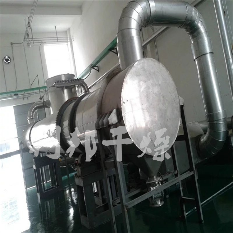 滚筒干燥机的转筒是略带倾斜并能回转的圆筒体,湿物料从一端上部进入,干物料从另一端下部收集。热风从进料端或出料端进入,从另一端上部排出。筒内装有顺向抄板,使物料在筒体回转过程中不断抄起又洒下,使其充分与热气流接触,以提高干燥效率并使物料向前移动。干燥物料热源一般为热空气、高温烟道气、水蒸气等。