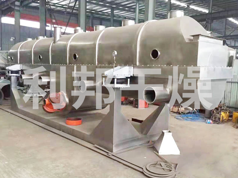 物料自进料口进入机内, 在振动力作用下, 物料沿水平方向抛掷向前连续运动,热风向上穿过流化床同湿料换热后, 湿空气经旋风分离器除尘后由排风口排出, 干燥物料由排料口排出。