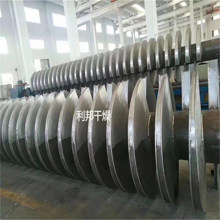 空心轴上密集排列着楔型中空浆叶,热介质经空心轴流经浆叶。单位有效容积内传热面积很大,热介质温度从-40℃到320℃,可以是水蒸汽,也可以是液体型:如热水、导热油等。间接传导加热,没有携带空气带走热量,热量均用来加热物料。热量损失仅为通过器体保温层向环境的散热。楔型浆叶传热面具有自清洁功能。物料颗粒与楔型面的相对运动产生洗刷作用,能够洗刷掉楔型面上附着物料,使运转中一直保持着清洁的传热面。浆叶干燥机的壳体为Ω型,壳体内一般安排二到四根空心搅拌轴。壳体有密封端盖与上盖,防止物料粉尘外泄而充分发挥作用。