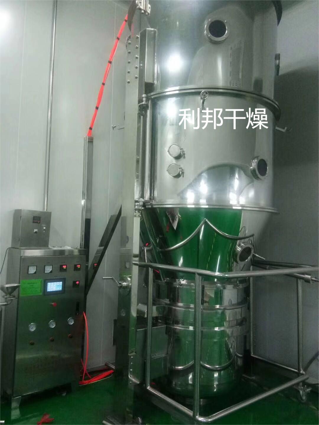 高效沸腾干燥机用于粒径为0.1-6mm的颗粒物料沸腾干燥,适用于制药、食品、轻工、化工行业的成品、中间体干燥.工作原理 自然空气在风机的抽引下,途经净化柜、加热器,在物料床板小孔中形成高速气流,并使物料呈沸腾状态,在气固两相大面积接触过程中物料中的水分迅速蒸发,从而达到干燥.