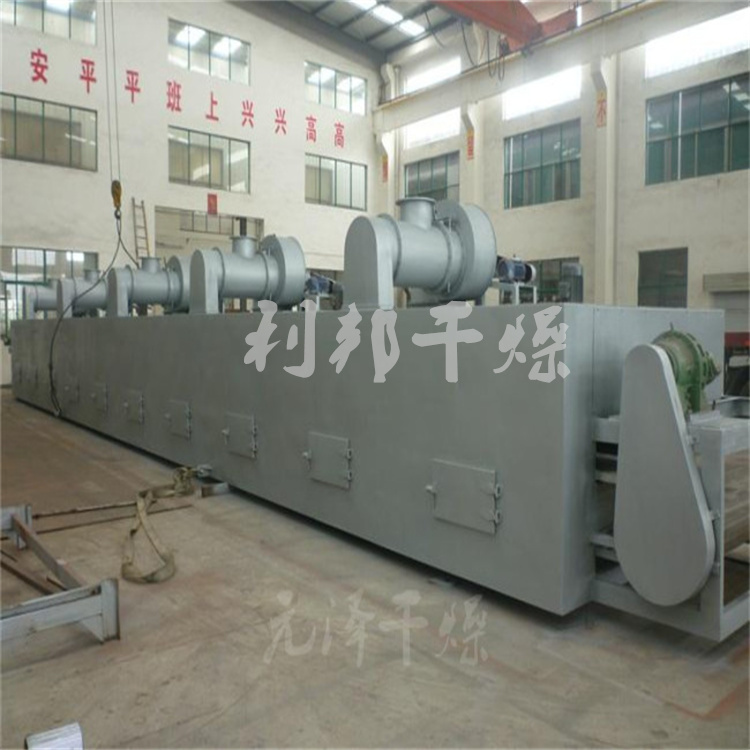 带式干燥机由若干个独立的单元段组成。每个单元段包括循环风机、加热装置、单独或公用的新鲜空气抽入系统和尾气排出系统。对干燥介质数量、温度、湿度和尾气循环量操作参数,可进行独立控制,从而保证带干机工作的可靠性和操作条件的优化。带干机操作灵活,湿物进料,干燥过程在完全密封的箱体内进行,劳动条件较好,免了粉尘的外泄。 带式干燥机是成批生产用的连续式干燥设备,用于透气性较好的片状、条状、颗粒状物料的干燥,对于脱水蔬菜、催化剂、中药饮片等类含水率高、而物料温度不允许高的物料尤为合适;该系列干燥机具有干燥速度快、蒸发强度高、产品质量好的优点,对脱水滤饼类的膏状物料,需经造粒或制成条状后方可干燥。
