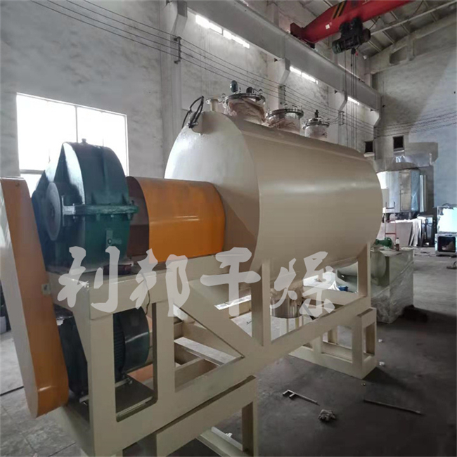 采用夹层与内搅拌同时加热方式,传热面大,热效率高。特别适用于干燥热敏性物料。被干燥物料有浆状、膏状、粒状、粉状或纤维状,并在固体醇纳的生产工艺中得到了广泛地应用。设置搅拌,使物料在筒内形成连续循环状态,进一步提高了物料受热的均匀。