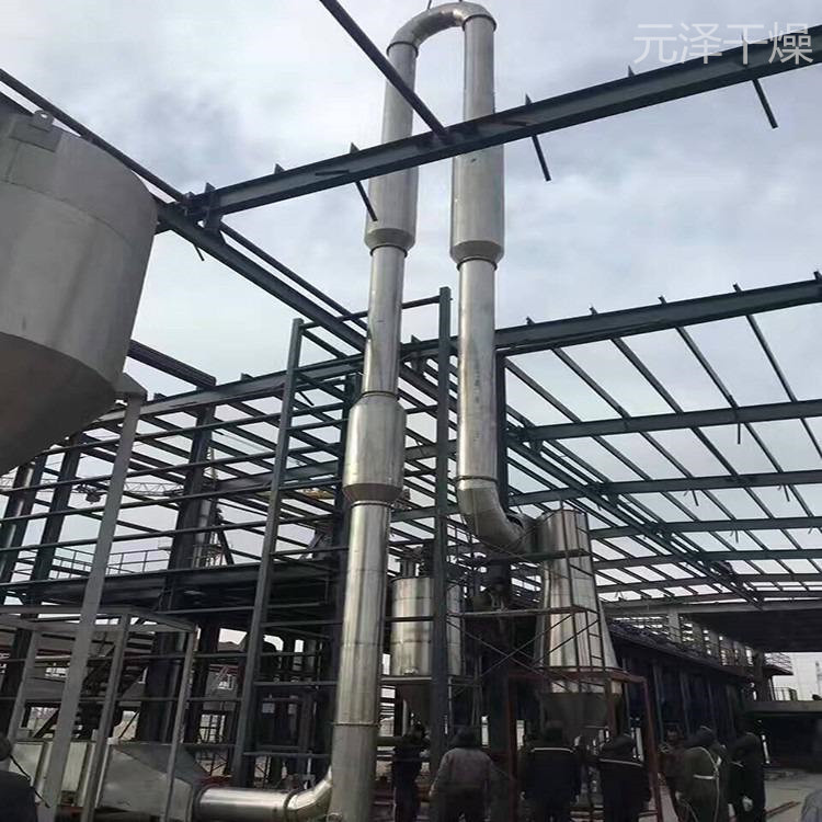 气流干燥机是利用高速流动的热气流使湿淀粉悬浮在其中。具有传热系数高,传热面积大,干燥时间短等特点。气流干燥也称"瞬间干燥"是固体流态化中稀相输送在干燥方面的应用。该法是使加热介质和待干燥固体颗粒直接接触,并使待干燥固体颗粒悬浮于流体中,因而两相接触面积大,强化了传热传质过程,广泛用于散状物料的干燥单元操作。