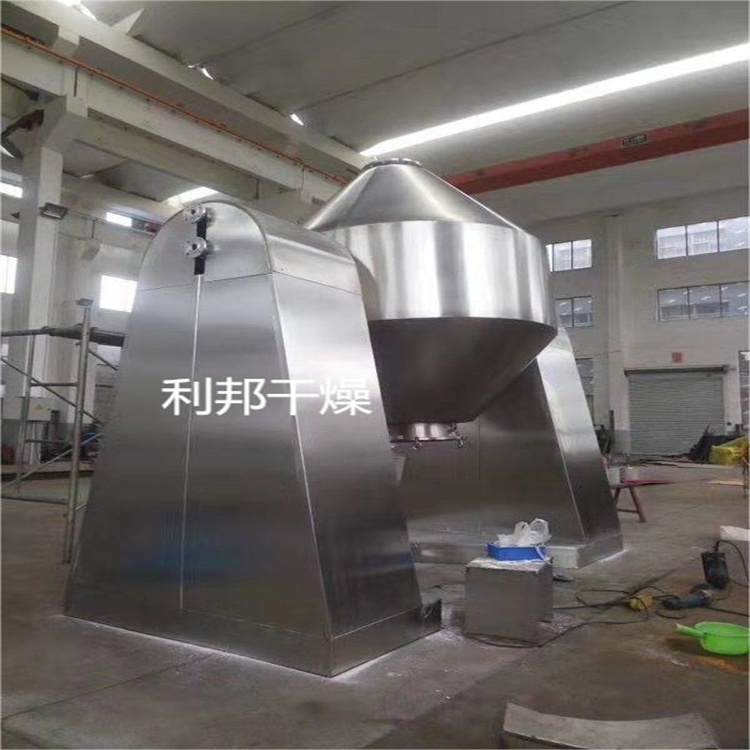 SZG系列双锥回转真空干燥机是集混合、干燥于一体的新型干燥机。将冷凝器,真空泵与干燥设备配套,组成真空干燥装置。(如不需要回收溶剂,冷凝器可不用)本机设计先进,内部结构简单,清扫容易,物料能全部排出,操作简便。能降低劳动强度,改善工作环境。同时因容器本身回转时物料亦转动,但器壁上不积料,故传热系数高,干燥速率大,不仅节约能源,而且物料干燥均匀充分,质量好。可广泛应用于制药、化工、食品、染料等行业的干燥。