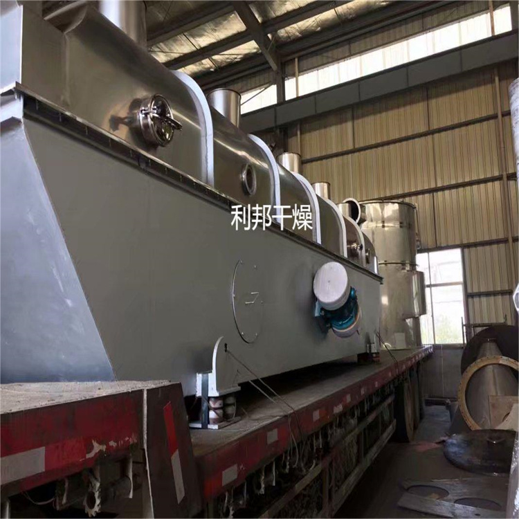 流化床干燥机是由物料自进料进口进入机内,在振动力作用下,物料沿水平面流化床抛掷,向前连续运动,热风向上穿过流化床同湿物料换热后,湿空气经旋风分离器除尘后由排风1:3排出.干燥物料由排料进口排出。适用于化工、制药、食品、脱水蔬菜、粮食、矿产等行业的粉状、颗粒状物料的干燥、冷却等作业。