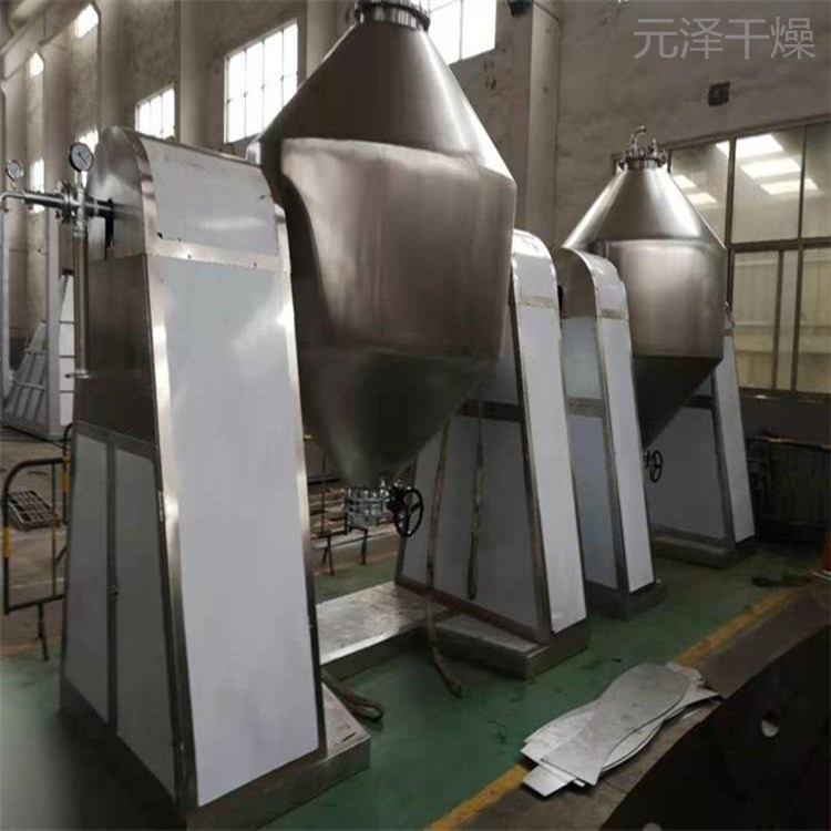 SZG系列双锥回转真空干燥机是集混合、干燥于一体的新型干燥机。将冷凝器,真空泵与干燥设备配套,组成真空干燥装置。(如不需要回收溶剂,冷凝器可不用)本机设计先进,内部结构简单,清扫容易,物料能全部排出,操作简便。能降低劳动强度,改善工作环境。同时因容器本身回转时物料亦转动,但器壁上不积料,故传热系数高,干燥速率大,不仅节约能源,而且物料干燥均匀充分,质量好。可广泛应用于制药、化工、食品、染料等行业的干燥。