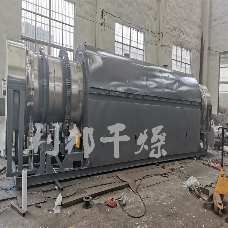 主要由供热源、上料机、进料机、回转滚筒、出料机、引风机、卸料器和配电柜构成;脱水后的湿物料从干燥机一端投入后,在内筒均布的抄板器翻动下,物料在干燥器内均匀分布与分散,并与并流(逆流)的热空气充分接触,加快了干燥传热,传质推动力。在干燥过程中,物料在带有倾斜度的抄板和热气流的作用下,可调控地运动至干燥机另一段星形卸料阀排出成品。
