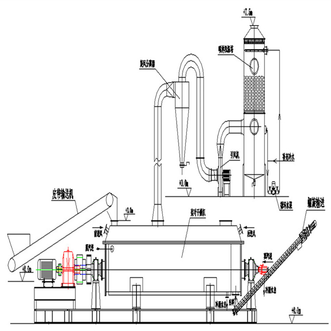 3、因所需热量全部由空心叶片和夹套供给,为降低排气湿度,补充少量热空气即可,粉尘夹带低,尾气易处理,不需除尘等辅助设备。