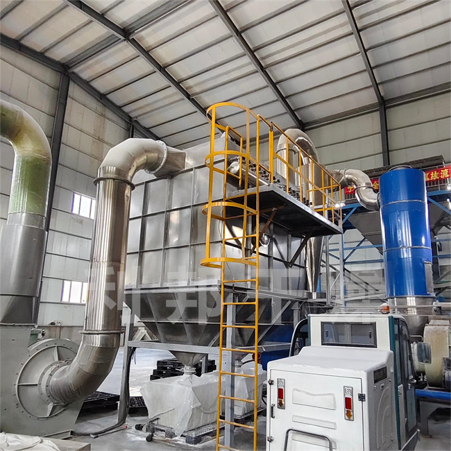 ● 干燥室装有分级环及旋流片,物料细度和终水份可调。(如碳酸钙终水份可调节器至≤0.1%)
