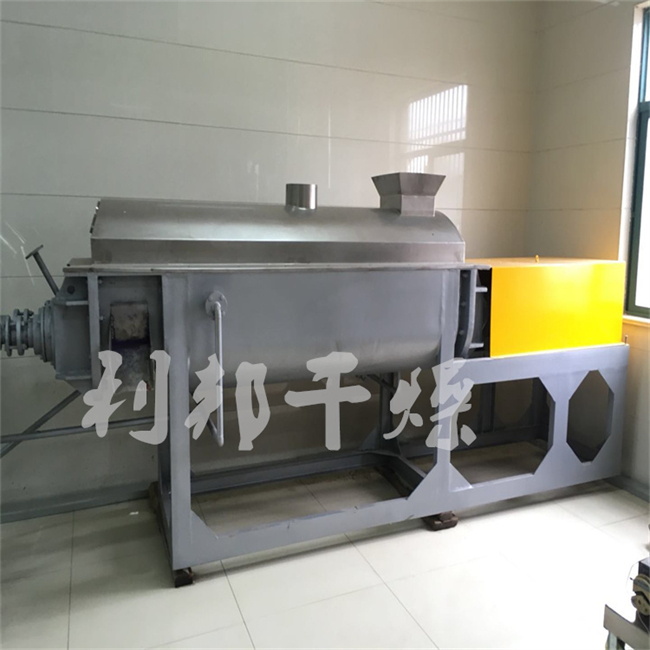 桨叶干燥机已成功地用于食品、化工、石化、染料、工业污泥等领域。设备传热、冷却、搅拌的特性使之可以完成以下单元操作:燃烧(低温)、冷却、干燥(溶剂回收)加热(融化)、反应和灭菌。搅拌浆叶同时又是传热面,使单位有效容积内传热面积增大,缩短了处理时间。楔型浆叶传热面又具有自清洁功能。压缩--膨胀搅拌功能使物料混和均匀。物料沿轴向成'活塞流'运动,在轴向区间内,物料的温度、湿度、混合度梯度很小。用导热油做热介质浆叶干燥机可完成低温燃烧工作。如:二水硫酸钙(Ca2SO4·2H2O) 燃烧转化为半水硫酸钙(Ca2SO4·1/22H2O)。碳酸氢钠(NaHCO3)经煅烧转化为纯碱(Na2HCO3)等。通入冷却介质,如水、冷却盐水等即可用来冷却。如:使用于纯碱行业的浆叶式凉碱机,取代老式的空气冷却凉碱机,节省了能源及尾气处理设备,降低了操作费用。干燥,设备主要的功能,不使用热空气,使溶剂回收、能源消耗、环境控制处于易处理的理想状态。对需回收溶剂、易燃易氧化热敏性物料尤为适应。已广泛用于精细化工、石化、染料行业。轴向区间内,温度、湿度、混合度的均匀性,使得设备可用来加热或融化,或进行一些固体物料反应。在复合肥及变性淀粉行业均已成功使用。浆叶干燥机可用来对食物和面粉进行灭菌处理。单位有效容积内大的加热面积,很快就将物料加热到灭菌温度,避免了长时间加热而改变物料品质。