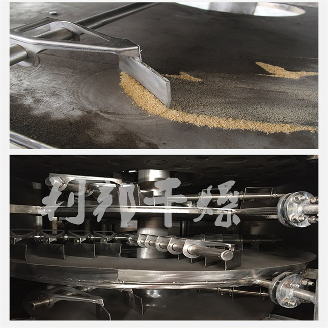 带有耙叶的耙臂旋转翻动物料,使其沿螺旋线在干燥盘表面流动。