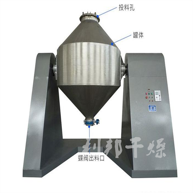双锥形筒体:由两个对称的圆锥体与中间圆柱体连接而成,筒体可绕水平轴旋转(转速通常为 5-15r/min),确保物料均匀翻动。